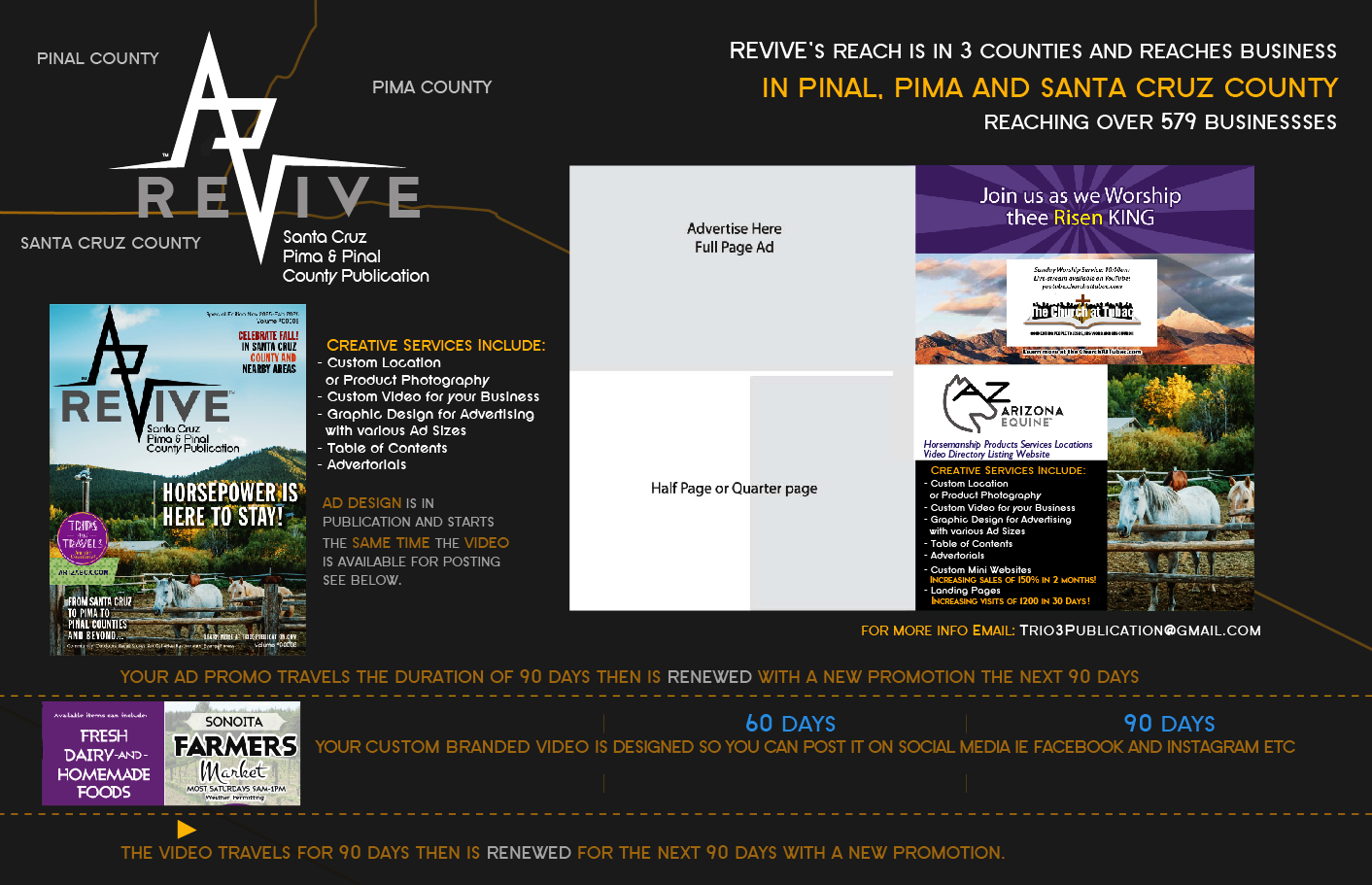 Reviving Communities, Building Mentorship and Serving the Horsemanship Industry in 3 Counties advertising in over 14 Cities! Special Edition ReVive Publication